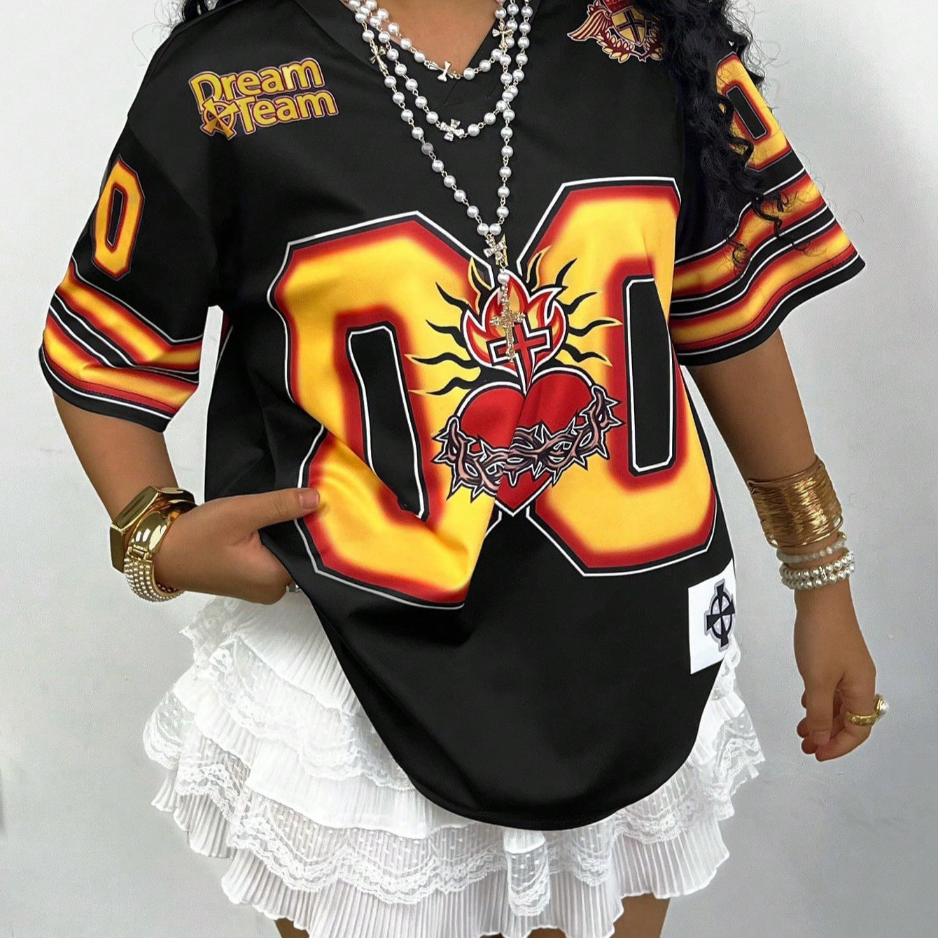 Summer Short-sleeved Women's T-shirt V-neck Letter Printing
